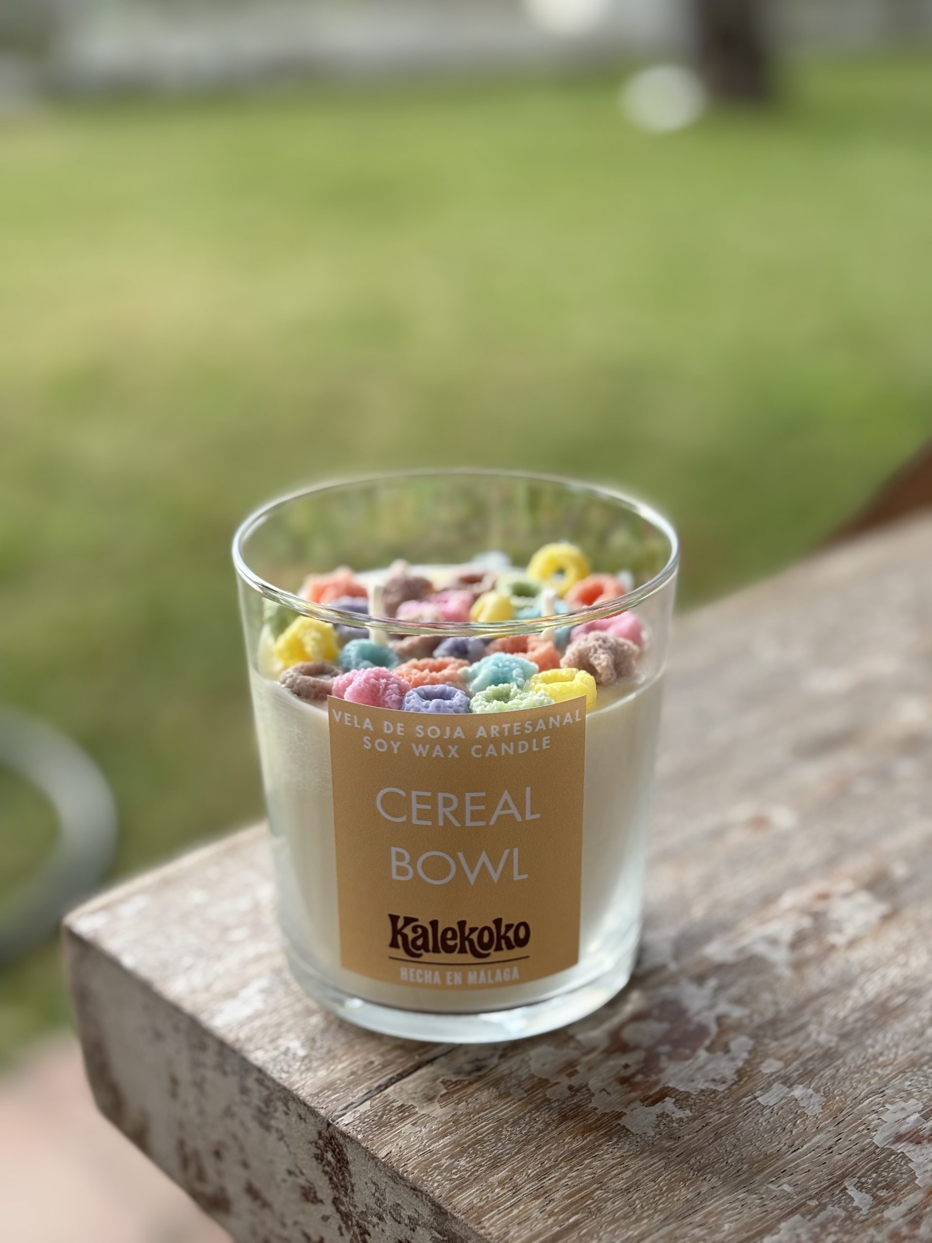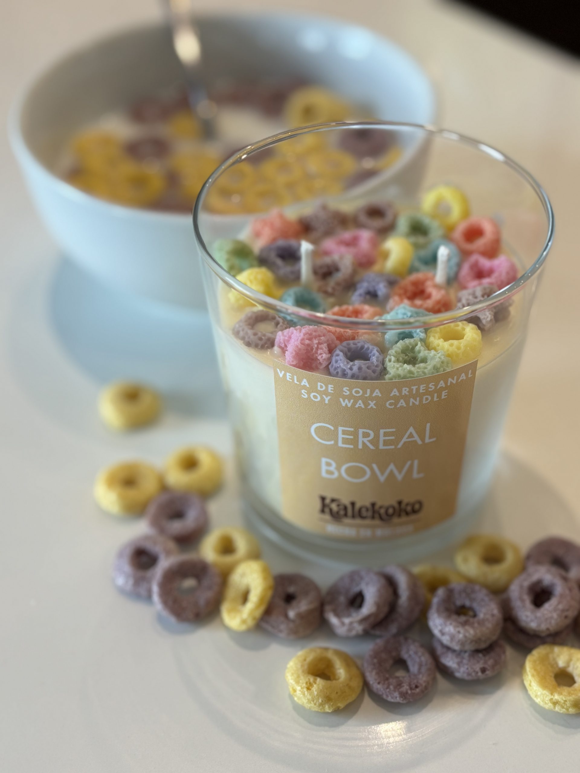 Elaborada artesanalmente con 270 gramos de cera de soja 100 % vegetal y ecológica, esta vela destaca por su diseño original que recrea un cuenco de cereales, decorado con crispies de colores hechos también de cera.