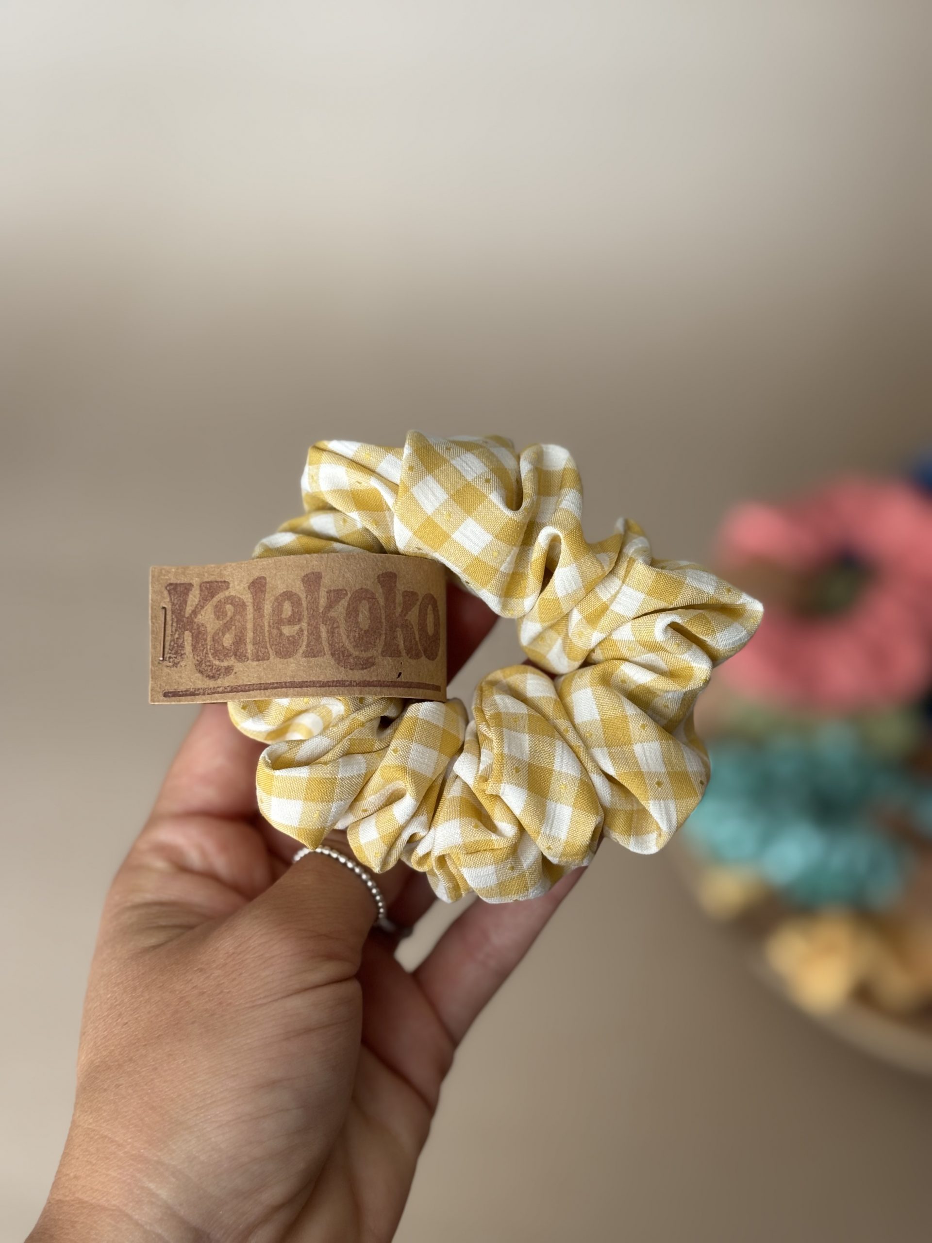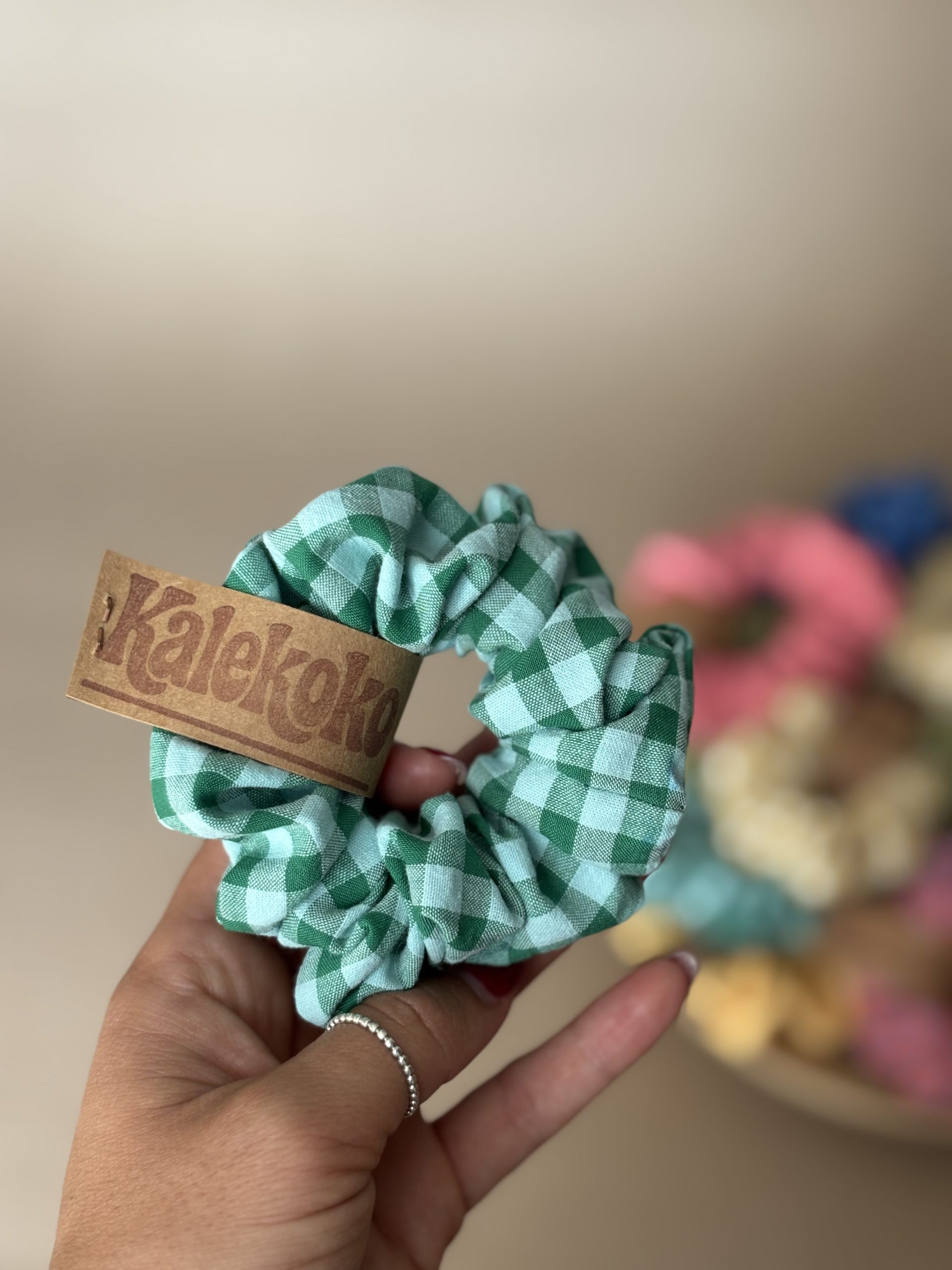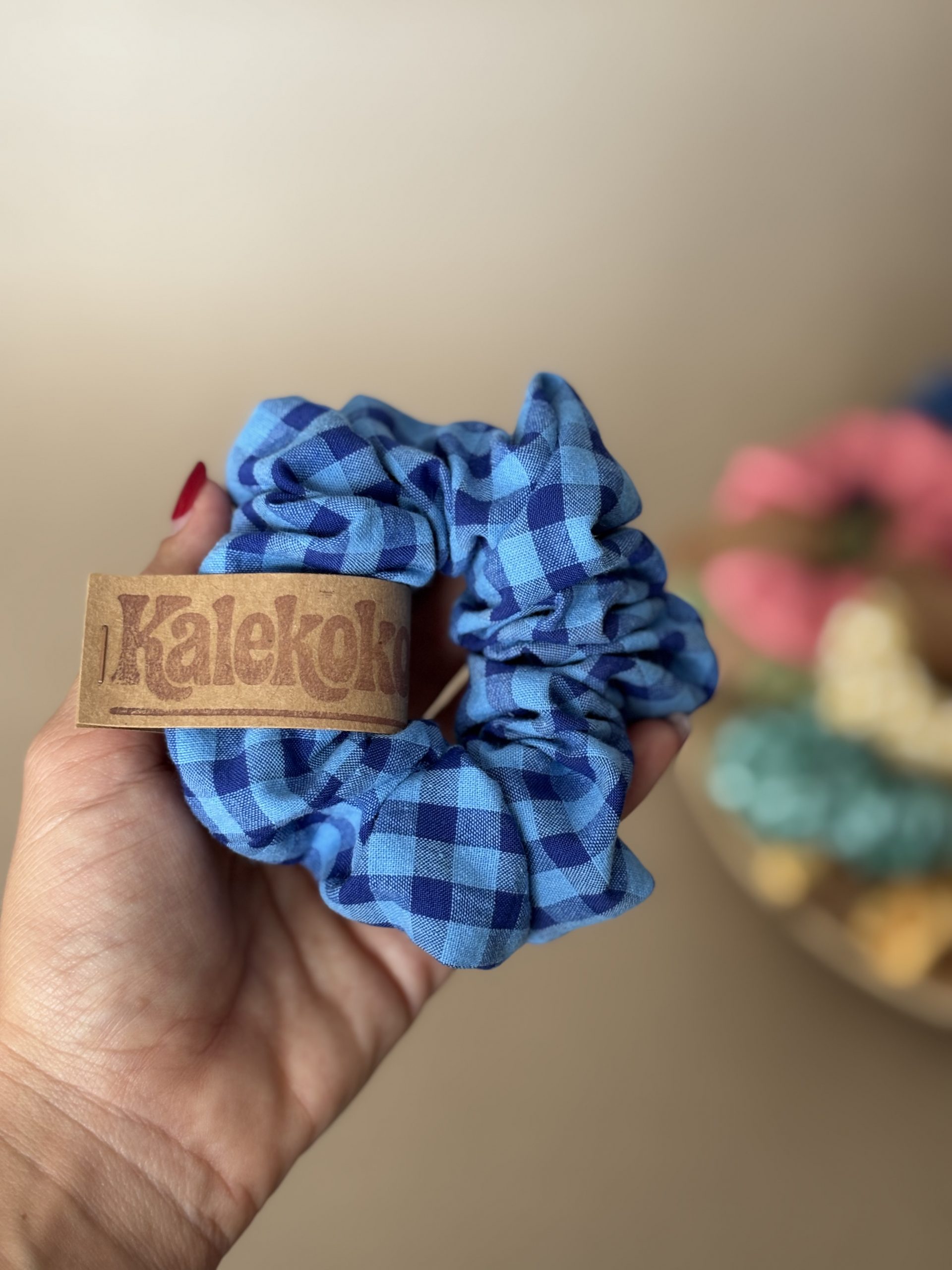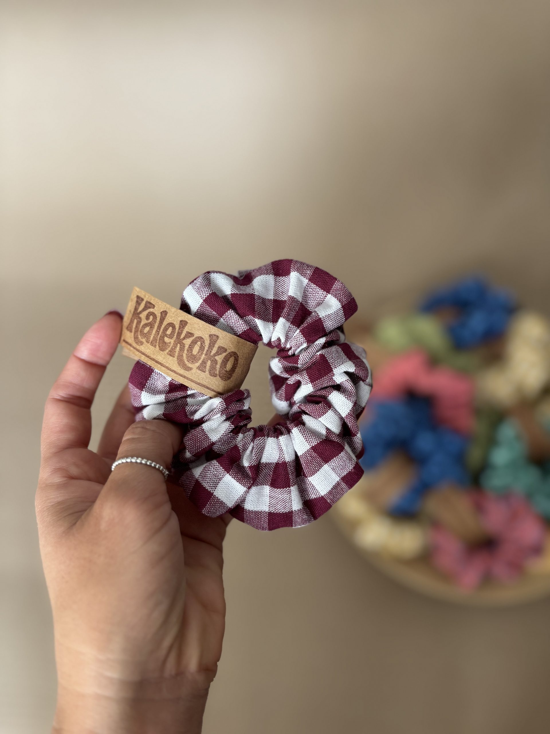 "Compré un scrunchie de cuadritos y es súper suave. El diseño es único y no daña mi pelo."