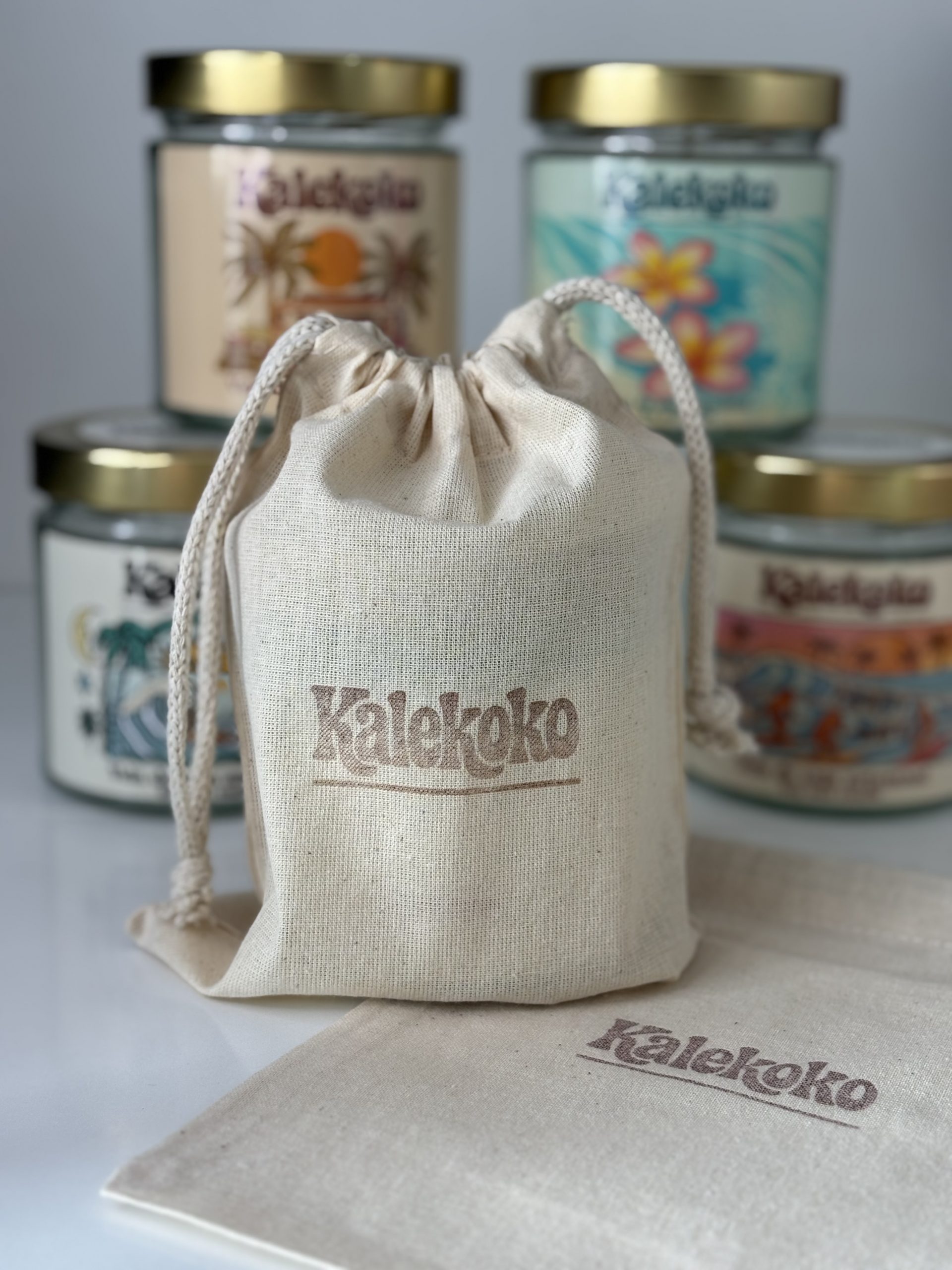 ☁️ Todas las velas se entregan en un saquito de algodón 100% natural con el logo Kalekoko.